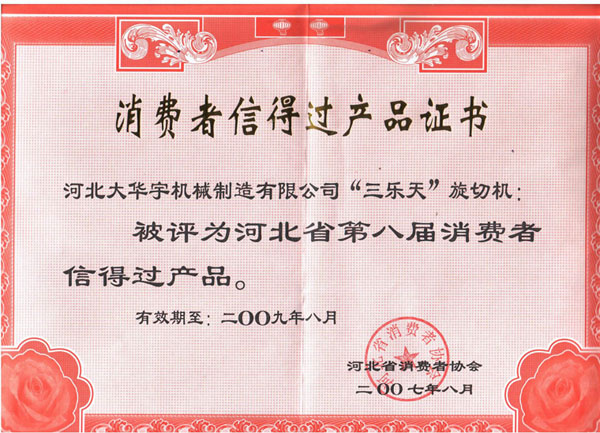 消费者信得过产品证书